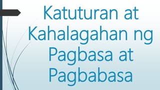 Iisa-isahin sa video na ito ang mga pinakamahalagang pampagkatuto na dapat na matamo ng mga mag-aaral sa asignaturang Pagbasa at Pagsusuri ng Ibat Ibang Tek. Naiuugnay ang mga kaisipang nakapaloob sa Pagbasa at Pagsusuri binasang teksto sa sarili pamilya komunidad ng Ibat Ibang Teksto F11PB IIId 99 bansa at daigdig K to 12 Core. Pagbasa At Pagsusuri Textbook K12.
