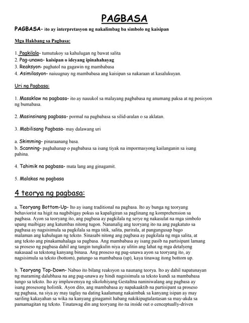 It will get himher off to a great start when heshe knows to read and understand it. The more that you learn the more places youll go. Pagbasa - SlideShare Dec 08 2013 Pagbasa 1.