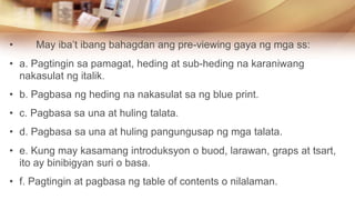 May ibat ibang bahagdan ang pre-viewing gaya ng mga ss. Ang mga Estratehiya sa Mabisang Pagbasa ay Nagsasangkot ng Mas Kaunting Aktwal na Pagbasa. Lg hanggat ang laro ay tumatakbo sa fullscreen mode.