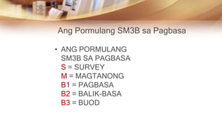 Sm3b na pormula para sa mabisang pagbasa. Jestonie Capistrano Glenn Guanzon Roden Lisud Ytgal Yrac Brandon Aungon Ian Romero Xaviery Pedernal Nazer Monez Pormula sa Pagbasa Kahalagahan Epekto S-M- Magtanong B1- Unang pagbasa B2-Balik Basa B3- 1Ito ay mabisang paraan sa mapanuring pagbasa 2. Marshall mb series 150. Mga sagabal sa mabisang pagbasa.